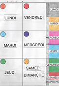 il colorie le calendrier de la couleur du jour (mise en évidence d'un rythme)